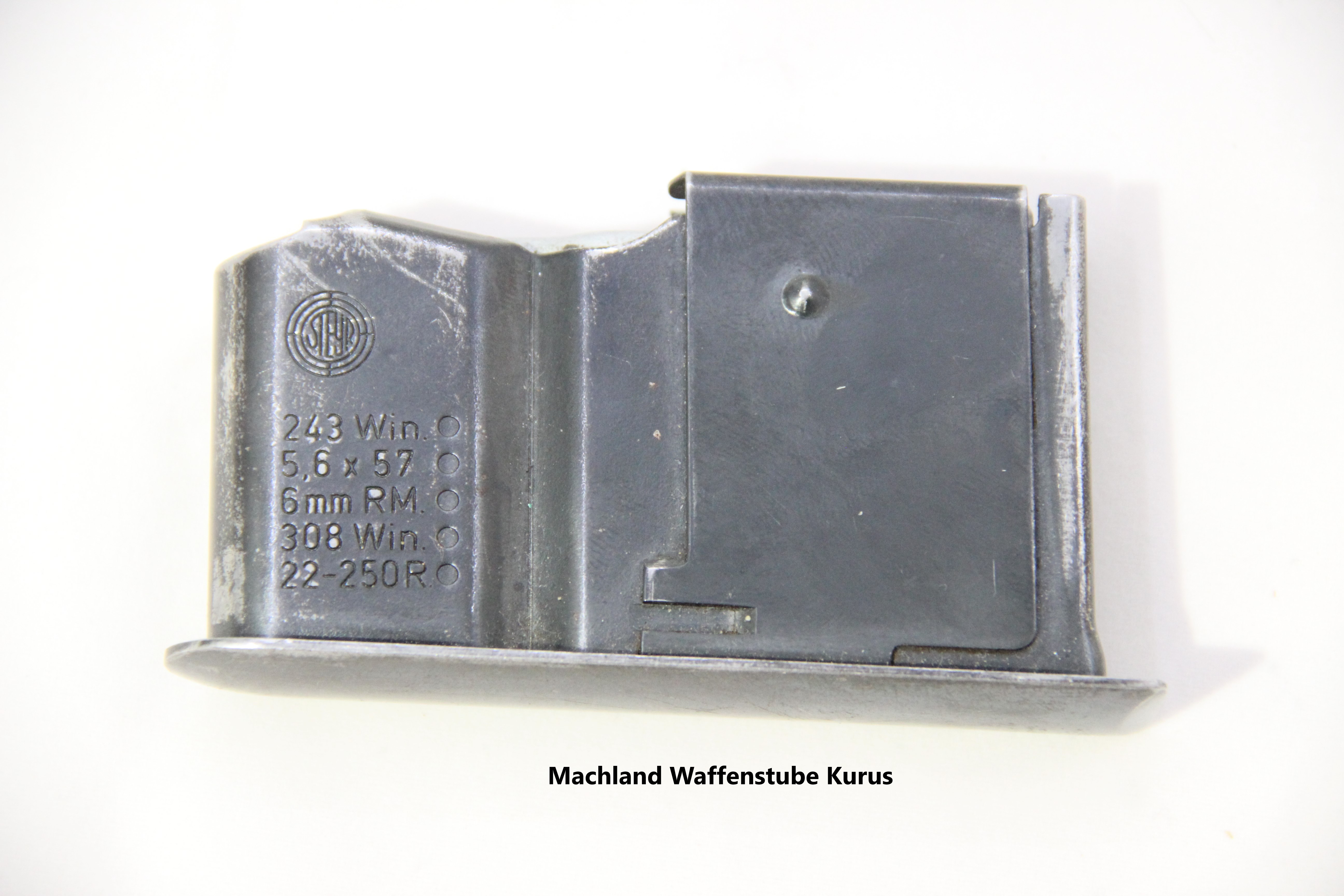 Magazin für Steyr Mannlicher Luxus alt, 3-Schuß Stahlmagazin, Kalibergruppe L, leichte Gebrauchsspuren